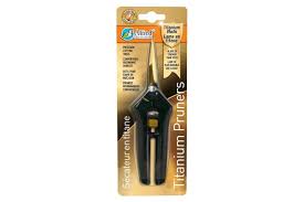 Alfred Horticulture delivers quality cuts with these titanium-coated, stainless steel, precision-sharpened scissors. The micro tip snips have a built-in spring in the middle, so they automatically push open without you having to manually do so. The comfortable handles make it easy to work for longer periods without discomfort. Once you finish the trimming job, the locking mechanism secures the closed blades in place.
