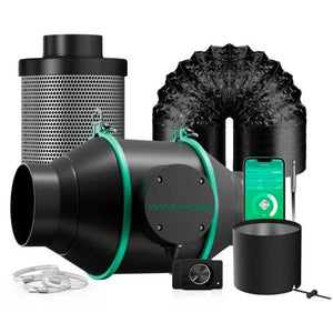 The Mars Hydro 4'' Smart Ventilation Kit includes a 4" inline duct fan that can be controlled via the app, as well as a high-efficiency charcoal filter and ducting system. This kit provides an intelligent cooling and filtration system for your grow tent, regulating and purifying the airflow and climate within your grow room.